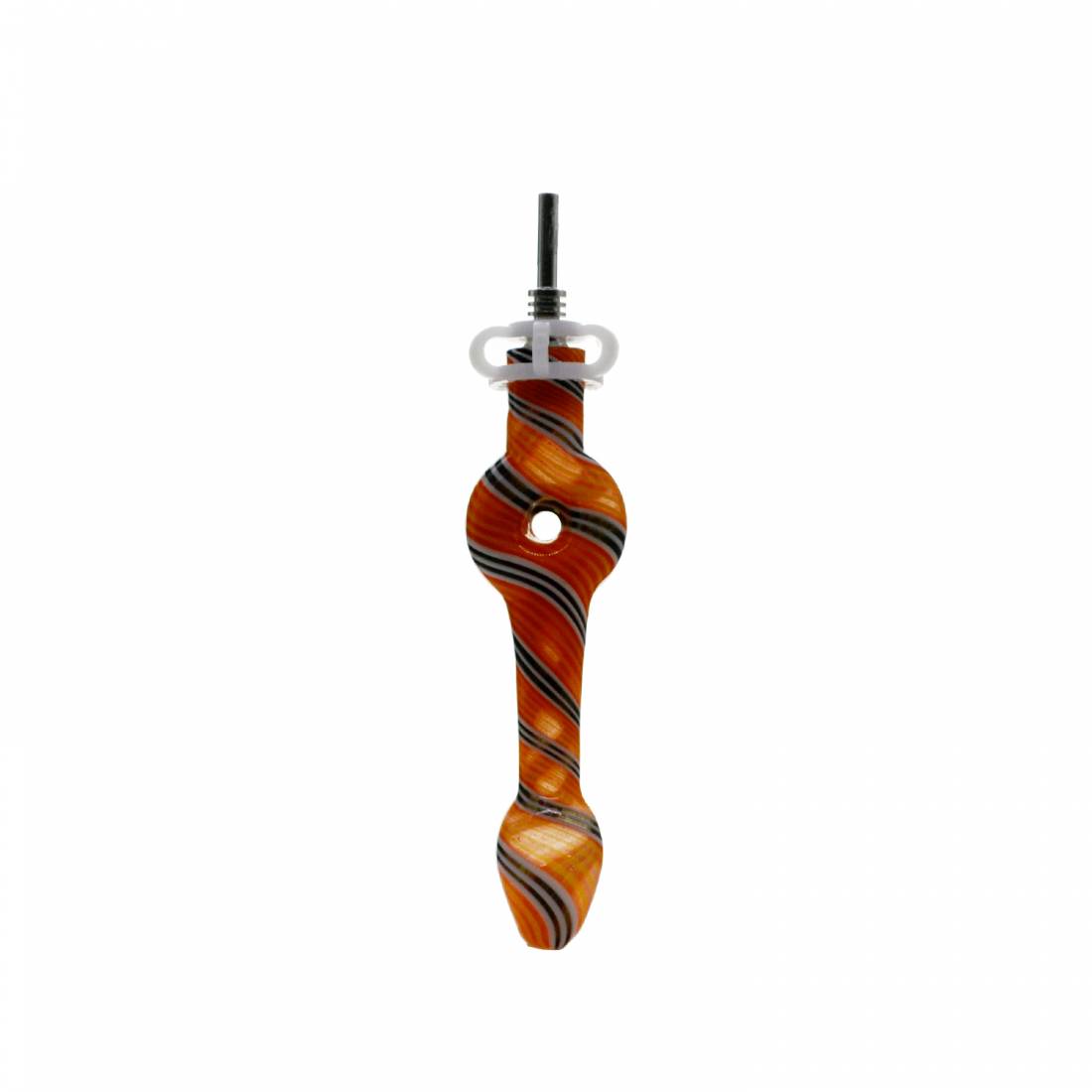 Incluye una punta metálica removible y un recipiente de vidrio para apoyar el concentrado, ideal para mantener la preparación más ordenada y evitar trabajar directo sobre la mesa. Es una opción simple y funcional para quienes buscan un nectar collector mini para su rutina con dabs.