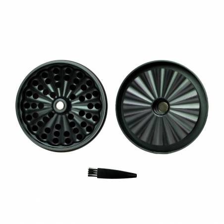 El sistema de dientes ofrece un triturado homogéneo ideal para pipas, bongs y vaporizadores. El polinizador separa las partículas finas y el depósito inferior guarda tu kief para aprovecharlo cuando quieras. Incluye cepillo y palita para una limpieza rápida.